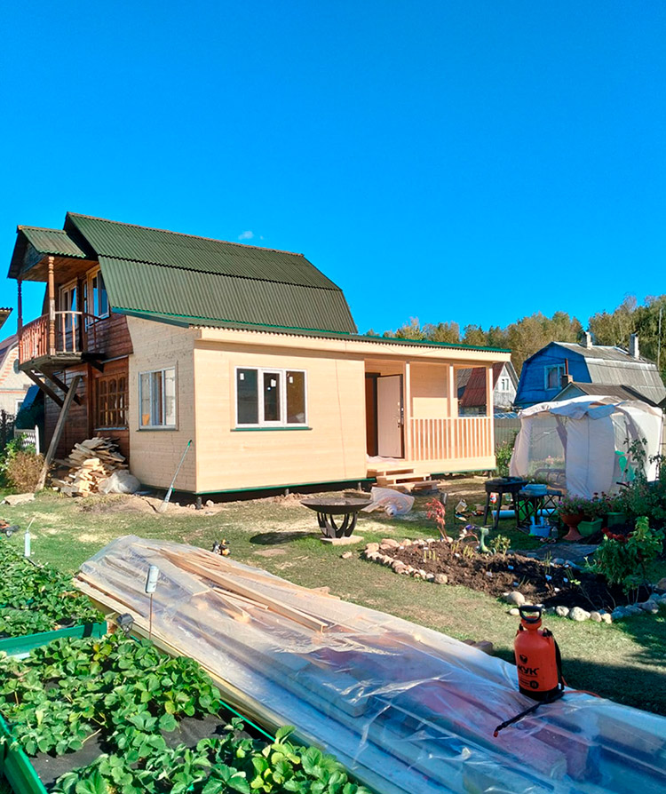 Мы работаем с надежными материалами, подбирая их под ваш бюджет и задачу. 90% клиенты заказывают каркасные пристройки к дому, это быстрый и надежный материал стен, легкость монтажа и утепления, прослужит долгие годы. Так же можем построить пристройку из газоблока, бруса, на металлическом каркасе и т.д.