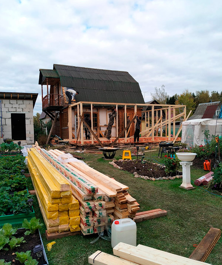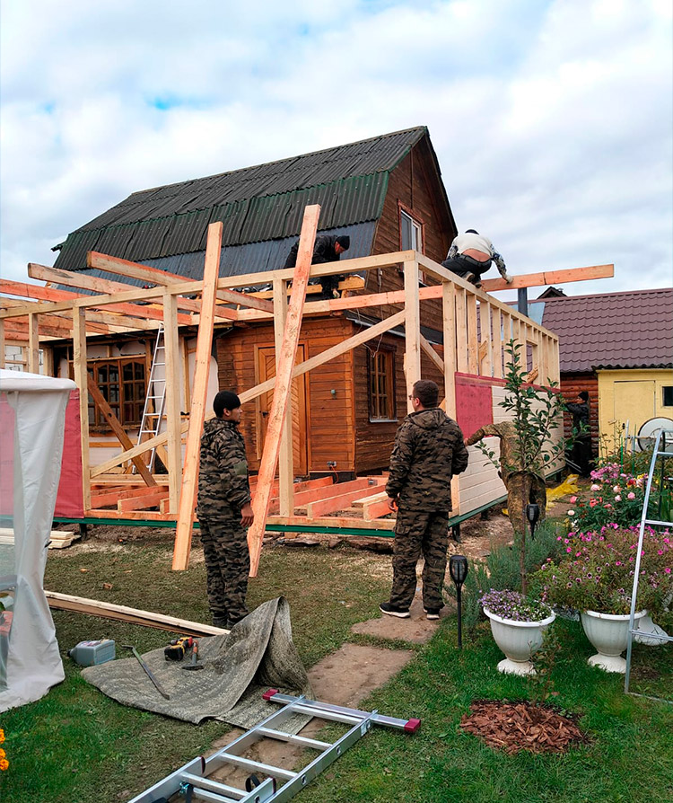 Мы частная бригада профессионалов своего дела, строим пристройки, крыши, обновляем фасады, выполняем реконструкцию домов и другие строительные работы в Московской области и Москве.